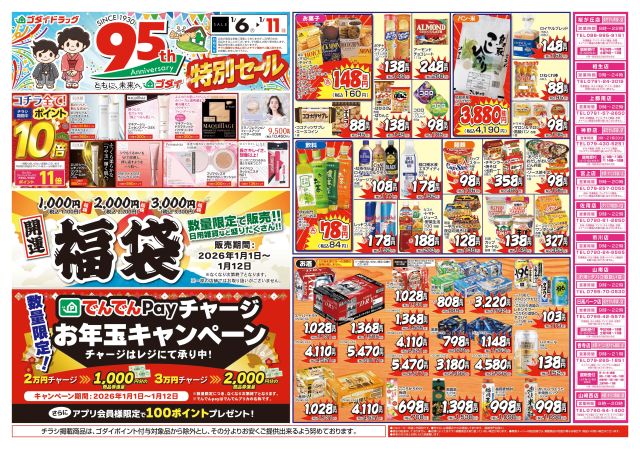 プリペイドカード機能とポイントカード機能が一体となった「でんでんプリカ」で、より便利にお買い物いただくことができます。お買い上げ金額に応じてポイントプレゼント!500ポイントで500円分のゴダイお買い物サービス券がもらえます。