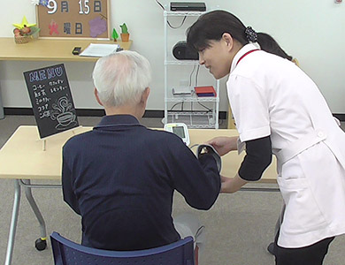 マシントレーニング後に、血圧・脈拍の確認を看護師が行います。