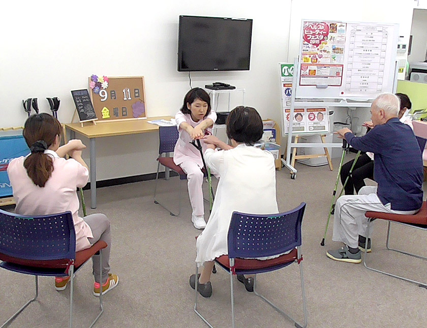 ゴム1本で多種多様な運動ができる上、体に負担をかける心配が少ないことから、