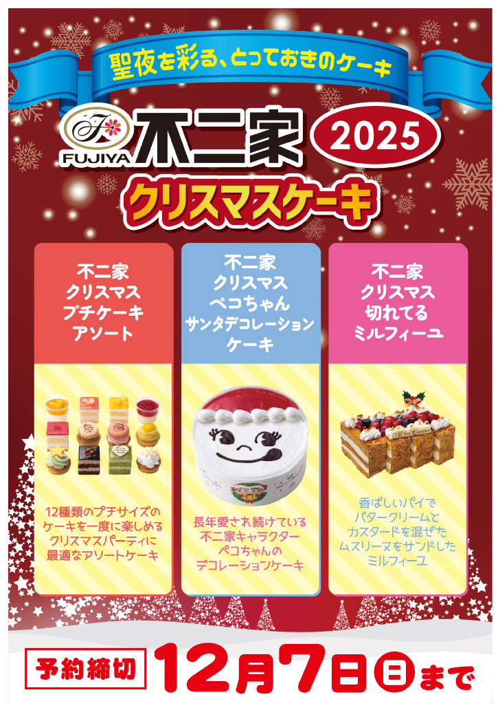 毎年人気の「クリスマスケーキ」のご予約を受付中!